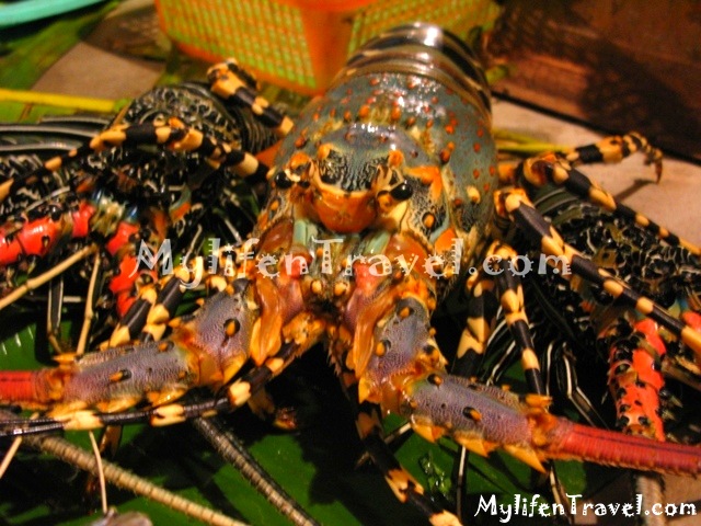 问了价钱后 , 这里的鱼 , 虾 , 龙虾都不贵